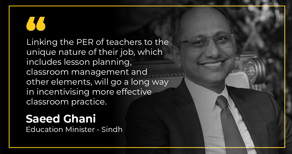 The PER for teaching staff has been developed after a lot of homework, research and consultation with education staff, and concentrates on professionalism, said School Education Secretary Narejo. He added that the Zindagi Trust had provided assistance and necessary motivation in its development.