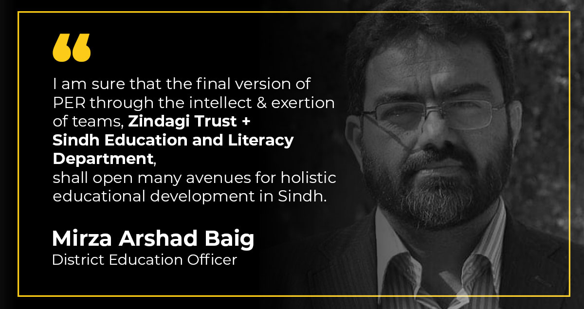 He remarked that transforming the ACR into the PER was a great effort of the Sindh Education Department and the Zindagi Trust.